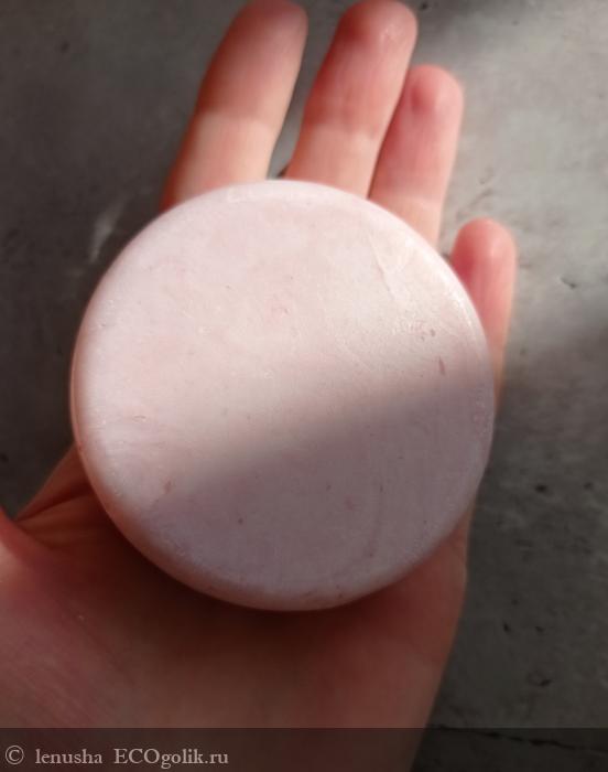 Брусок круглой плоской формы, нежно - розового цвета.