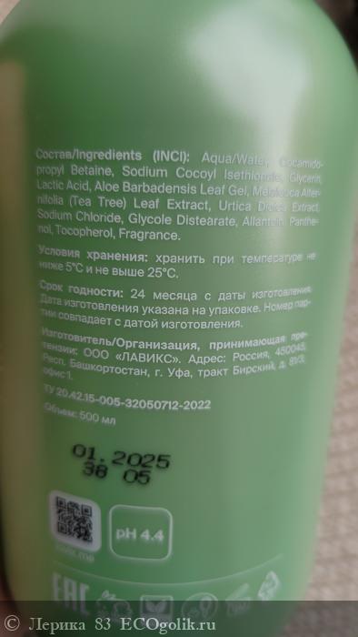 Состав хороший, SLS действительно отсутствуют. Зато есть гель алоэ и экстракт листьев зелёного чая.