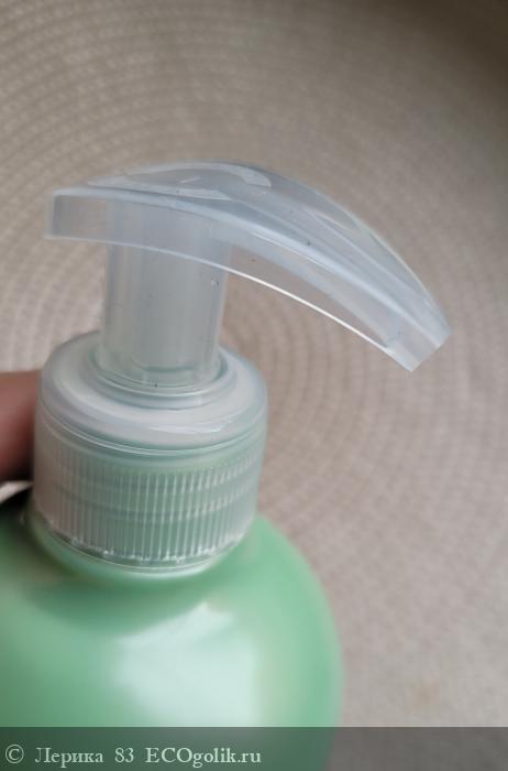 Флакон округлой формы, изготовлен из качественного пластика, который приятно держать в руках. Так как аромат у данного геля травянистый, то и оформление в пастельно-зеленых тонах.