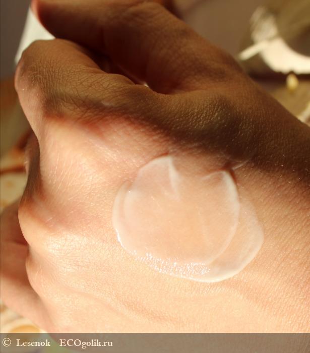 Текстуру я бы отнесла больше к флюидной. Она более воздушная, чем классическая кремовая (например как у крема с керамидами или увлажняющего "Липовый цвет" от "Живицы"). Хорошо держит форму и не утекает. Однако быстро начинает подтаивать от тепла тела.