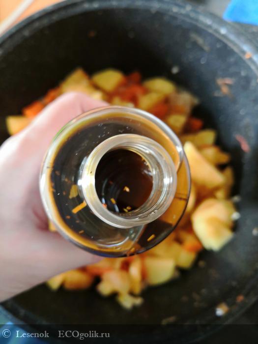 По необходимости-добавляю ещё кипятка, чтобы продуктам было в чем тушиться и обмениваться вкусами.