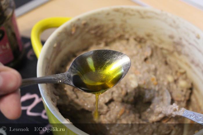 Растительного масла нужно пару чайных или одну столовую ложку. В данном случае-масло льна, можно использовать и подсолнечное и кокосовое, у кого что есть дома.