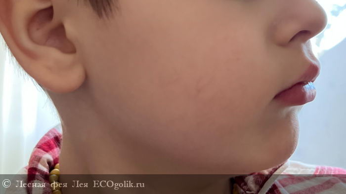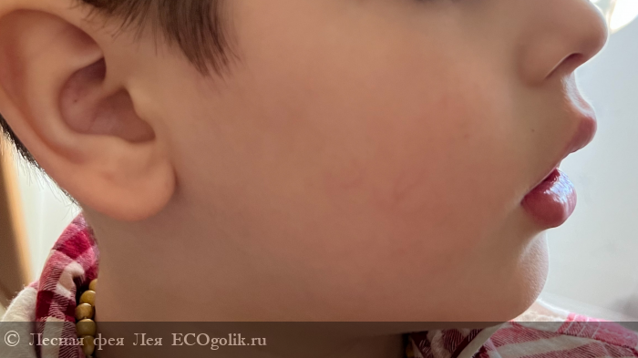 Сладкого в этот день не ел. На холоде долго не гулял (о да, май в этом году балует низкой температурой и даже снегом). Как итог - вечером на правой щеке у моего ребёнка появилось красное пятно с корочкой!