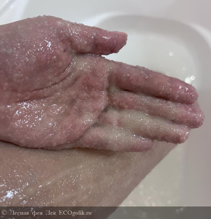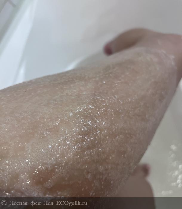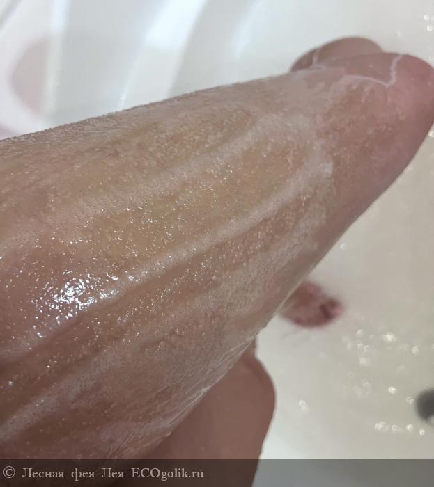 А когда скраб касается воды, он постепенно начинает превращаться в нежнейшее молочко: