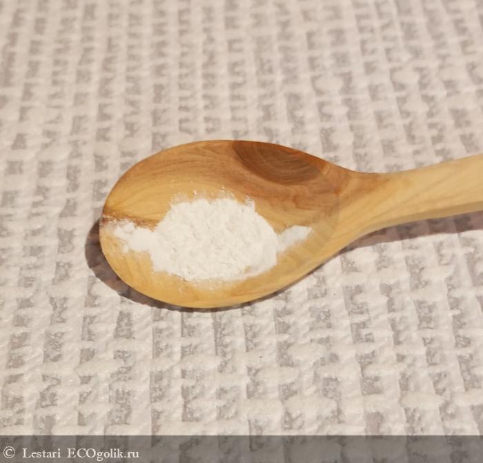 Пудра мельчайшего помола, по виду напоминает сахарную пудру, такой же ослепительно белоснежный цвет.