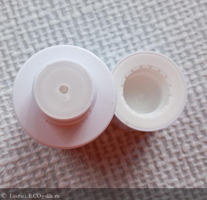 Флакон закрывает откручивающая крышка, Отверстие флакона имеет дополнительную мембрану с дырочкой по центру. Размер её оптимальный для порционного и точного дозирования.