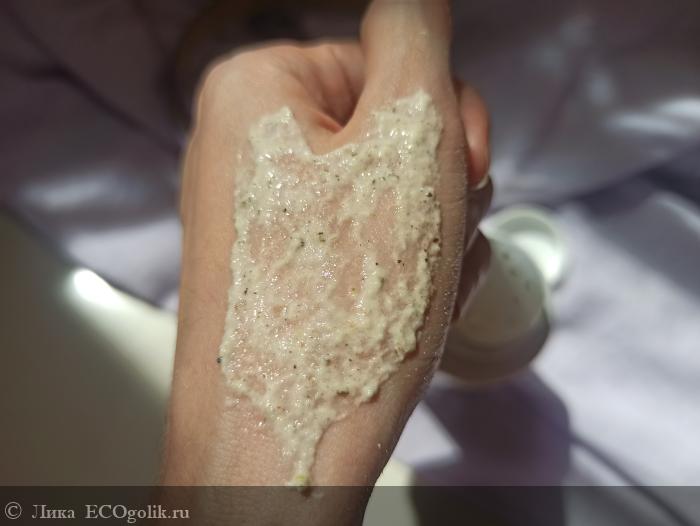 Я не могу назвать это скрабом. Самые жёсткие частицы здесь - это экстракты трав, но они насколько мелкие и мягкие, что какого-то механического воздействия не чувствуется совершенно.