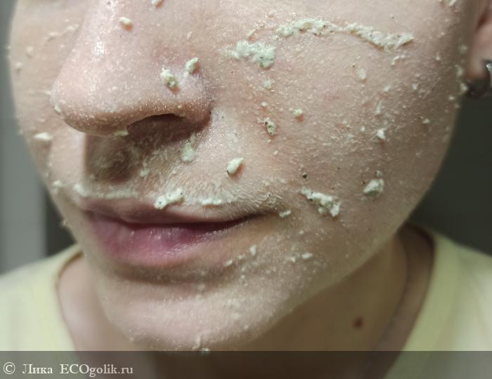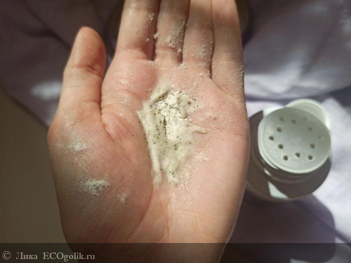 Частицы средства очень мелкие, все ингредиенты измельчины до состояния пудры. Потому-то продукт такой деликатный и совершенно не травмирует кожу.