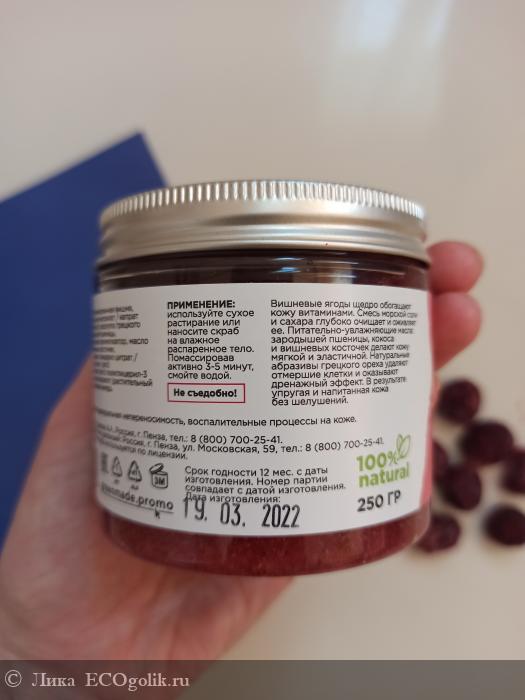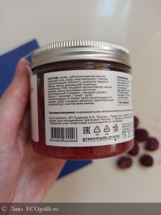 Сахарно-соляном скрабе для тела "Вишня с грецким орехом" от Greenmade.