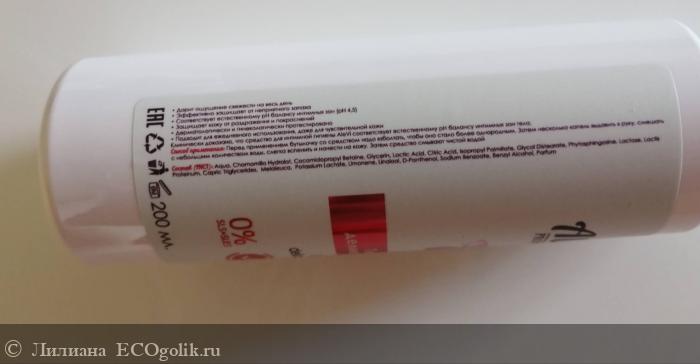 Важно отметить, что состав геля безопасен и максимально мягок для кожи. Это очень важно, так как интимная зона требует особенно бережного ухода. Гель не содержит агрессивных химических компонентов, сульфатов и парабенов, что делает его пригодным для ежедневного использования.