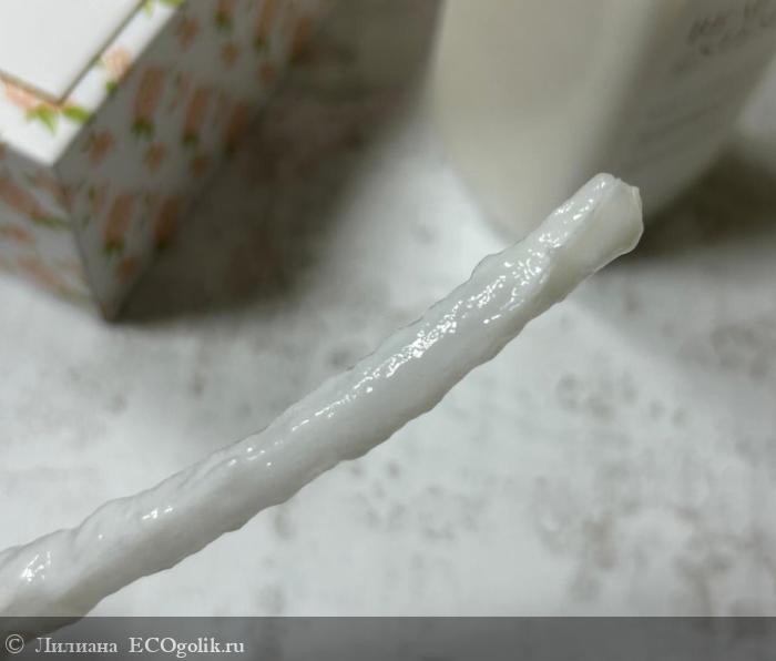 Само средство кремовой консистенции, текстура приятная, напоминает йогурт цвет белый.