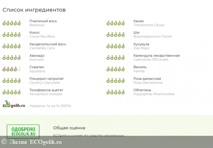 Бальзам представляет из себя прессованную композицию масел и воска. Имеет жирную текстуру, приятный легкий аромат