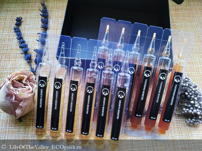 Конечно, саму результативность данных сывороток в части уплотнения волос и увеличения их количества можно оценить спустя месяцы применений, и вряд ли только после одного набора.
