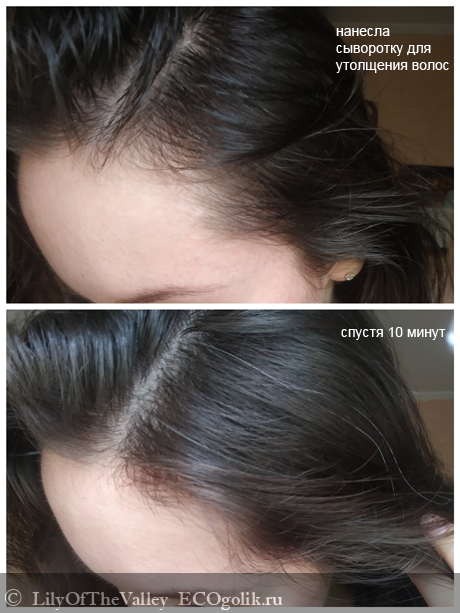 И да, этот эффект утолщения волоса ощущается после нескольких применений (хотя понятно, что структурно не могло произойти изменений в волосе). Не знаю, как это объяснить, но после сыворотки волосы более оживленные, утяжеленные и не разлетаются во все стороны, как это бывает обычно.