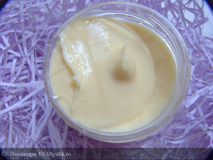 Крем очень красивого, солнечного желтого цвета. Консистенция у него просто воздушная! Не как у взбитого масла, но настолько лёгкая, что наносится крем очень просто и впитывается в считанные секунды.