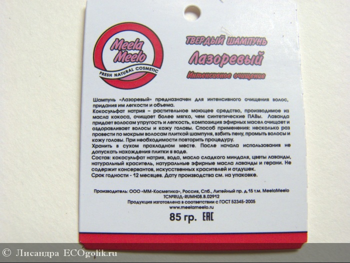 Состав я даже не буду комментировать, всё и так предельно ясно - шампунь совершенно натуральный.