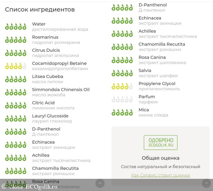✅Создан на основе гидролатов с высоким вводом экстрактов, нет SLES и SLS, не сушит кожу, деликатно очищает ее.