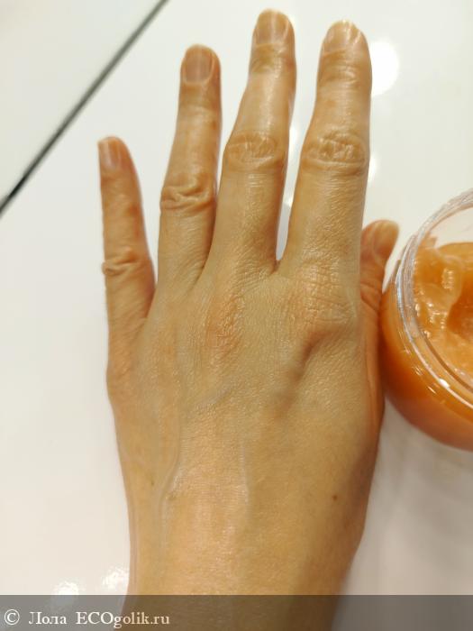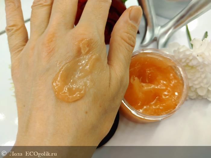 🍑 Шикарнейшая текстура, очень приятная, гладкая на ощупь, а самое важное, что она не разольётся, ни прольётся, не капает, пока доносишь её от баночки до тела, ни уляпывает всё вокруг