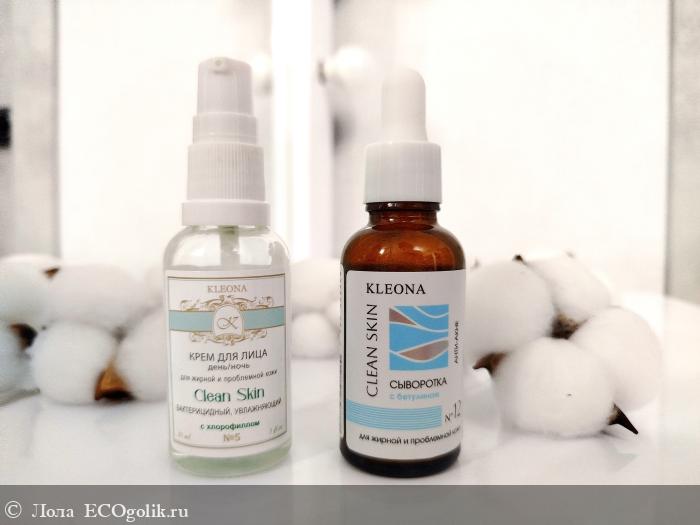 Я приноровилась пользоваться вечером сывороткой и кремом Анти-акне от Kleona,