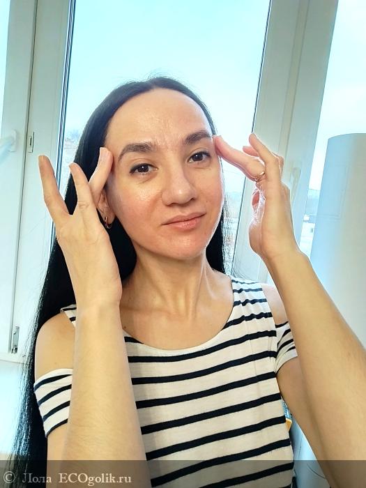 Даёт возможность нанесения на область вокруг глаз, а для меня это главный аспект. Область вокруг глаз зачастую очень сухая и сейчас это очень важно и необходимо в холодный период. До вечера сыворотка лежит на коже без каких-либо скатываний, закупориваний, про неё попросту забываешь, так как она настолько сродняется с кожей, что ощущение просто идеальной подсвеченной кожи.