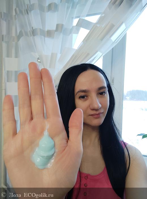 Маска небесно лазурного цвета! Цвет божественный, невозможно даже поверить что такой красивый цвет удалось добиться полностью натуральным составом! Это ещё один огромный плюс серии, средства такого потрясающего цвета, каждый раз наслаждаюсь.