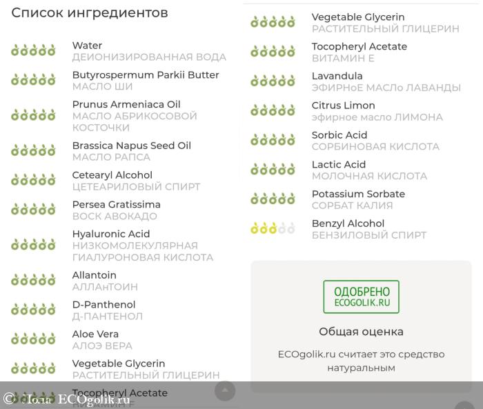 Аромат. Яркий аромат лаванды, именно цветочная лаванда, не сухая трава, а именно релаксирующие, яркие приятные нотки, только собранной лаванды. Ещё, я отчётливо чувствую аромат чайного дерева, этот запах мой нос улавливает идеально точно, хотя, на удивление, в составе я его не нашла, но у меня Прямо стойкое чувство того что оно присутствует в креме. Аромат крема природный, комфортный и приятный. Нанося крем мы получаем крутое наслаждение перед сном лавандовых полей.