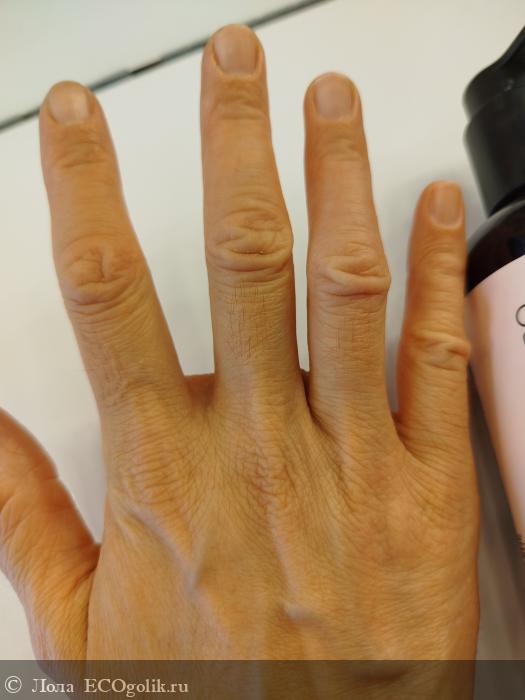 Длинный носик у дозатора даёт возможность наносить продукт как на руку, так и сразу на тело.