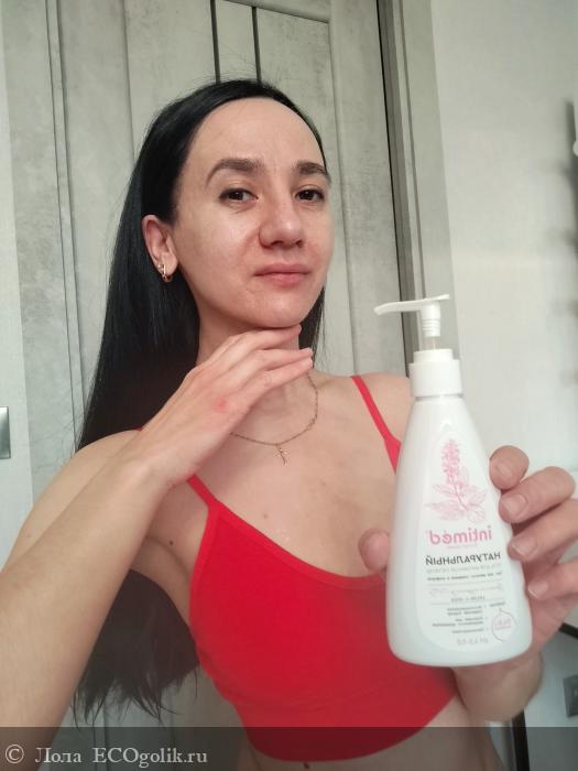 как гель для лица. Интимка содержит большое количество восстанавливающих, нежных, легких, гипоаллергенных ингредиентов и спокойно подойдет для очищения кожи лица, она также очень комфортна и не вызовет негативных реакций, так как состав подобран очень тонко и щепетильно.