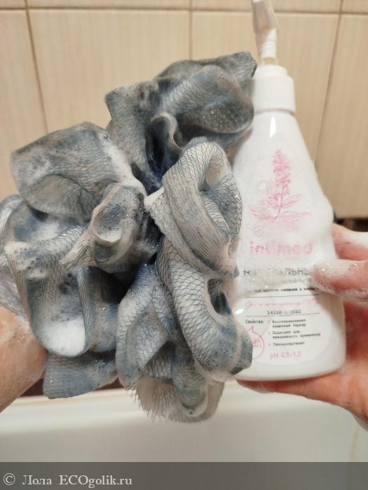 при использовании с мочалкой мы получаем очень-очень мягкую, легкую, нежную пену.