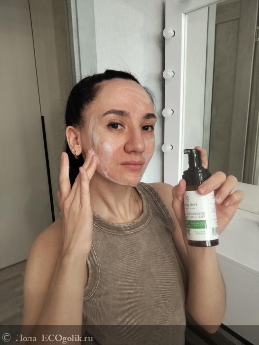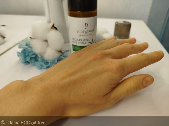 При этом пенка даёт прекрасное очищение, увлажнение, после умывания пенкой от Real Green нет чувства стянутости, есть только лёгкое, дышащее, чистое личико.