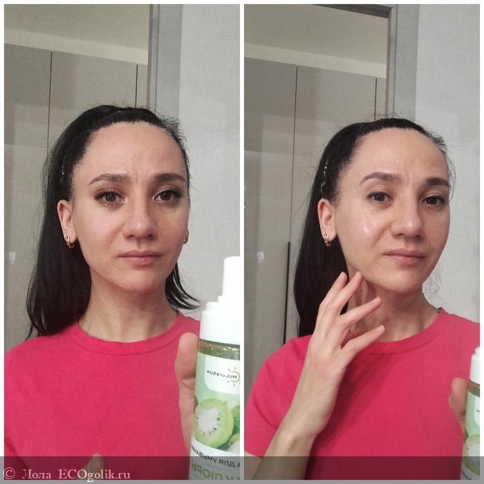 Кожа заметно очищена, нет скрипа и сухости, такое увлажнённое питательное очищение с успокаивающим эффектом и эффектом сияния.