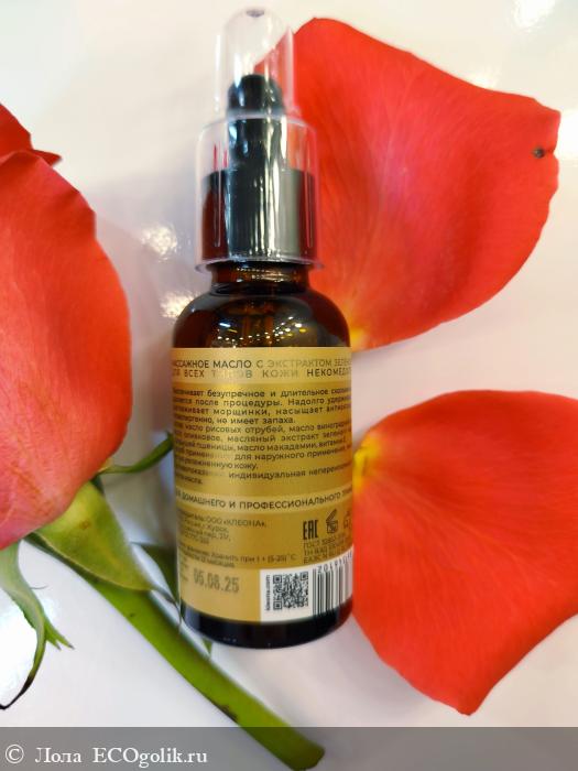 - Массажное масло с экстрактом зелёного чая для всех типов кожи некомедогенное