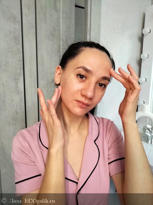 Просто массаж руками и пальчиками, наношу просто малюсенькую горошинку, на всё лицо хватает одной горошинки,