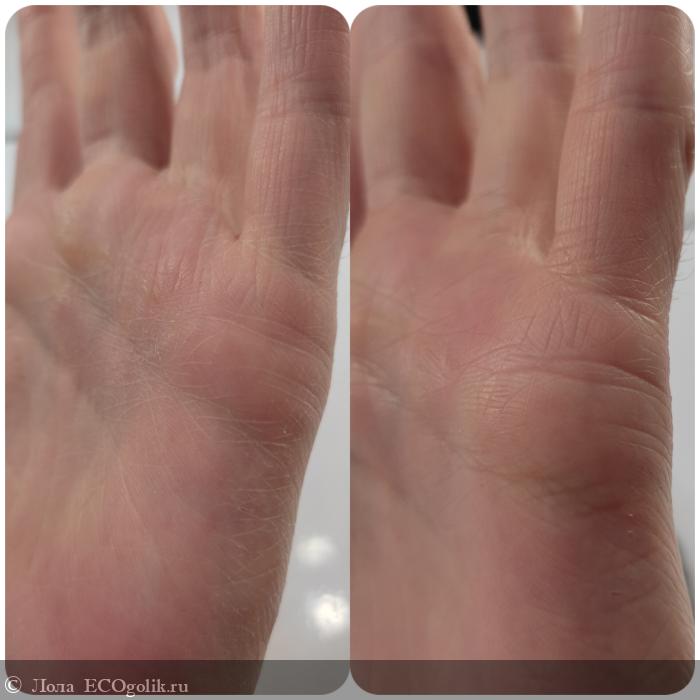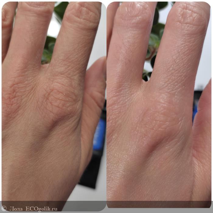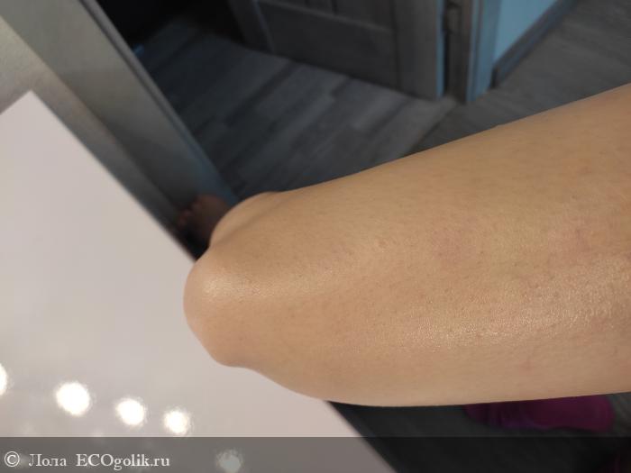 На локтях крем отлично справляется с непрезентабельным видом, сухость исчезает, остаётся ухоженная кожа.