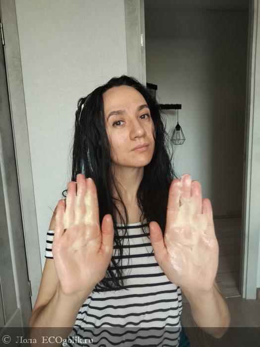 На вымытые чистые волосы я наношу продукт. Набираю его в ладонях,