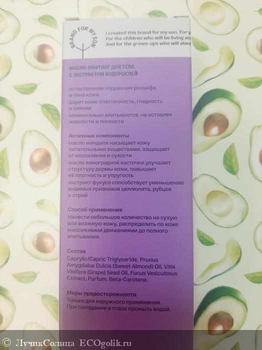 Вообще я пожалела, что у меня не было такого Масла-лифтинга для тела от Brand For My Son, когда я была беременной своими детками и жаль, что сразу после родов у меня не было такого масла. На теле было бы меньше растяжек, однозначно. Так как в нем присутствуют природные ингредиенты, которые стимулируют дренаж в подкожных клетках, усиливают в них кровообращение, одновременно питают, омолаживают, увлажняют, не дают коже "рваться" при этом, а помогают ей эластично пережить непростые периоды жизни.