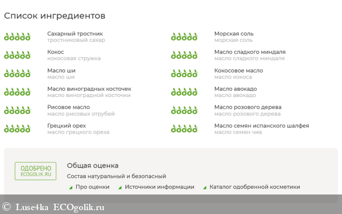 Состав данного скраба меня очень порадовал,он состоит только из натуральных ингредиентов!