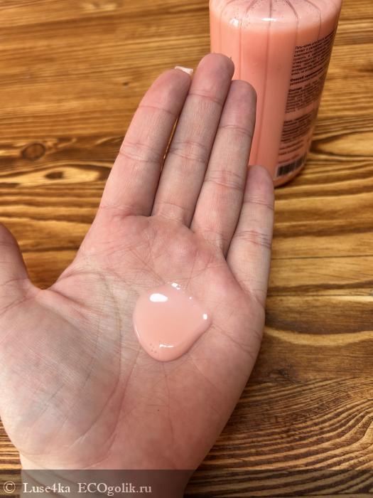 С упаковкой у данного геля тоже всё отлично-мой любимый вариант пластиковый флакон,которым безопасно пользоваться в ванной и удобный дозатор,который работает исправно