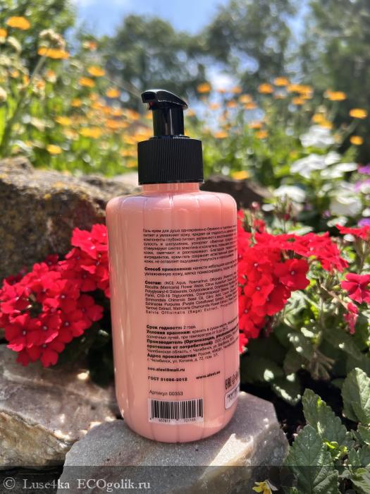 Гель-крем для душа в летнюю жару (у нас сейчас на Ставрополье жара началась +32)просто необходим и в моей семье,которая состоит из 4 человек данное средство всегда расходуется очень быстро,ведь мои мужчины никогда не экономят и мне кажется они просто купаются в геле даже не добавляя воды и конечно мне очень важен натуральный состав у геля для душа,ведь как смывают с кожи мои мужчины гель для душа остаётся загадкой
