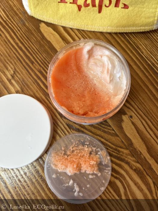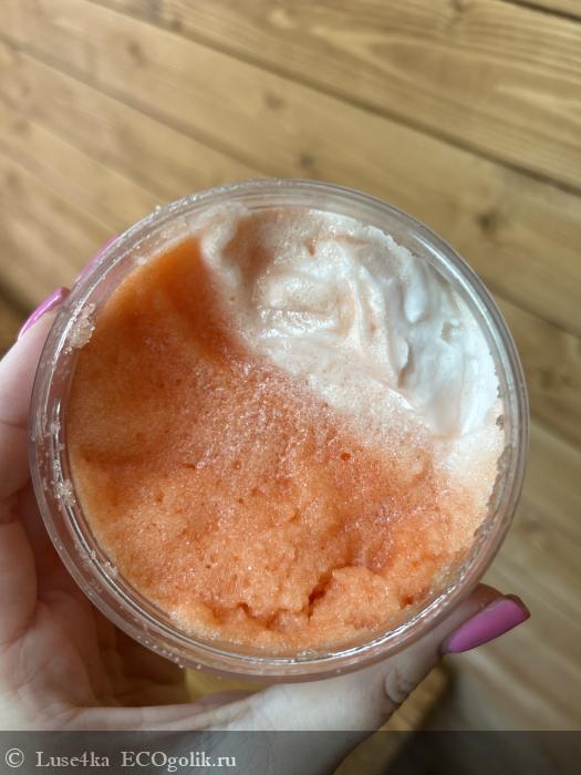 Благодаря отлично подобранному составу и оригинальной консистенции у скраба две составляющие (скраб на сахарной основе и крем )результат после применения просто потрясающий,да и сам процесс увлекательный и ароматный