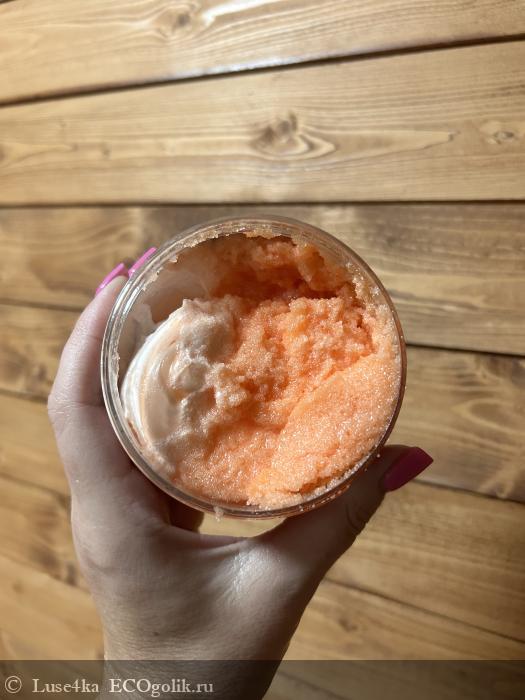 Благодаря отлично подобранному составу и оригинальной консистенции у скраба две составляющие (скраб на сахарной основе и крем )результат после применения просто потрясающий,да и сам процесс увлекательный и ароматный