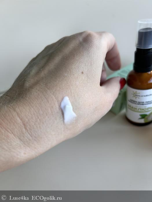 Крем быстро впитывается не оставляя никаких неприятных ощущений,в виде липкой плёнки или маслянистого блеска
