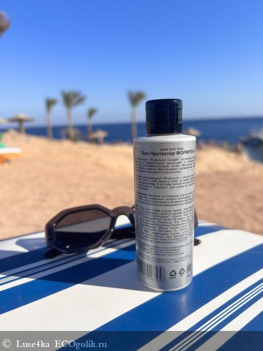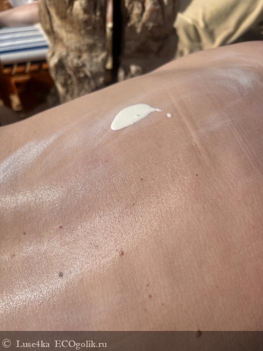 Поэтому маленького объёма 100мл.мне одной хватило на весь мой небольшой отпуск с учётом,что два дня мы ездили в город и на экскурсию и тело было закрыто,а для лица я естественно использовала отдельный крем с защитой spf50
