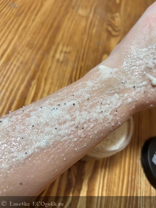 Но так как в составе присутствуют ещё и частички мака,то скрабировать кожу получается очень основательно и тут нужно контролировать весь процесс,чтобы не травмировать кожу