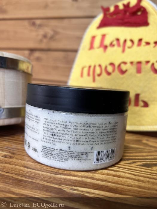 Я стараюсь использовать скрабы в сауне и на распаренную кожу наносить сахарный скраб одно удовольствие,но главное успеть проработать одну зон до момента полного растворения сахарных частиц