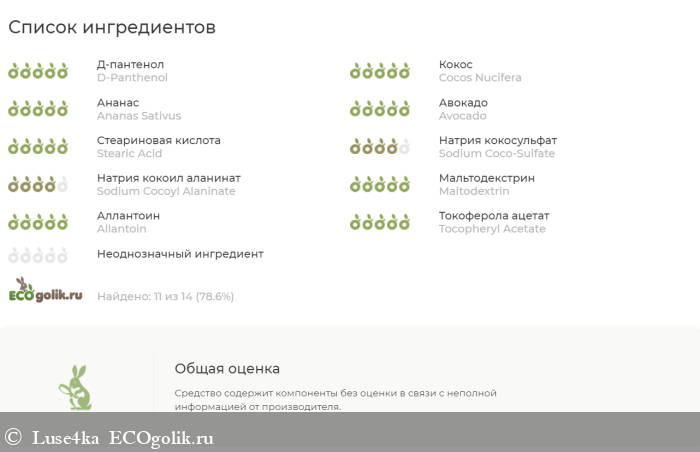 Начну по своей традиции с разбора состава.Кролик-Экоголик не распознал несколько ингредиентов,но я так думаю только из-за красивого описания самого ингредиента-тростниковый сахар мелкого помола,в целом состав отличный и может коже принести только пользу