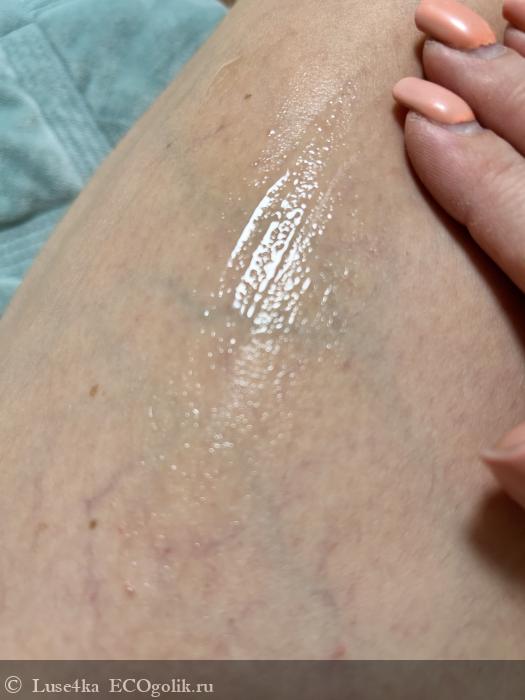 Я выбрала способ полегче-намазываю гель на участки ножек и живота, благо он имеет жидкую консистенцию и по коже наносится легко