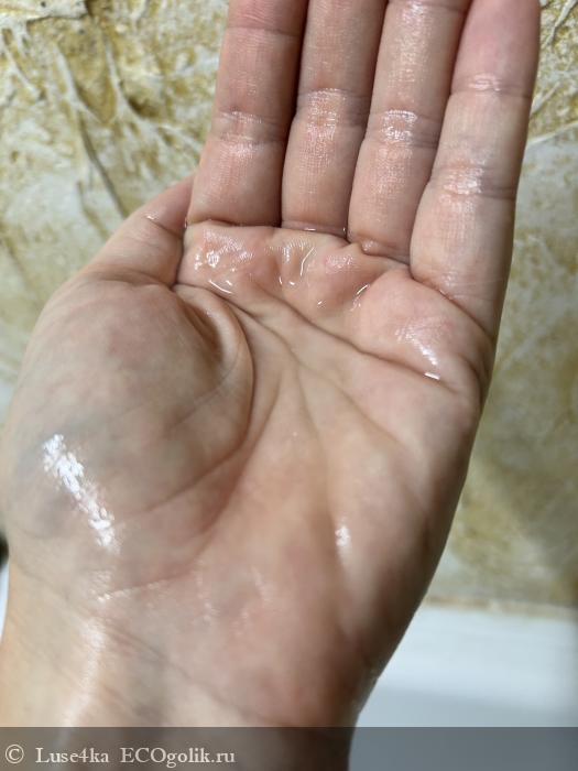 Прозрачная, легкая, жидкая текстура сначала немного удивляет — не привыкла пользоваться такой жидкой консистенцией, поэтому к дозировке нужно приноровиться, чтоб лишнее не налить в ладонь, но постепенно привыкаешь к дозированию
