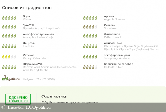 Состав крема натуральный,сайт Экоголик дал своё одобрение