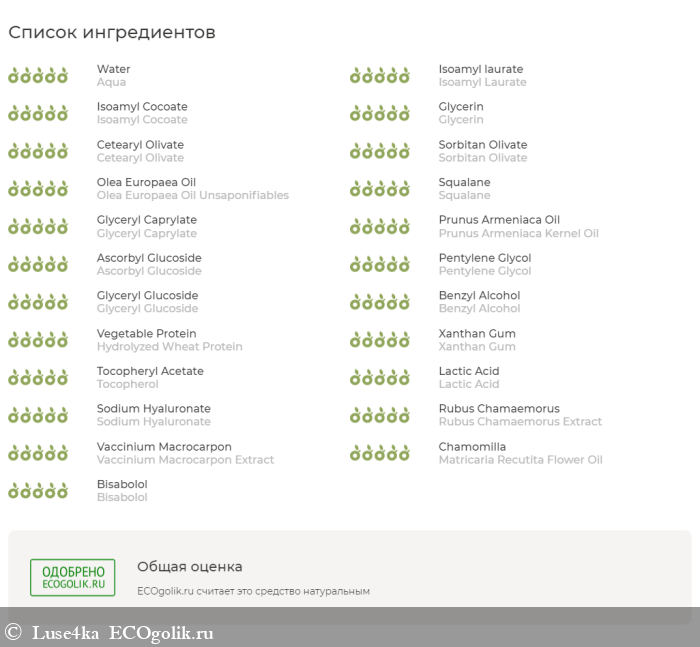 Состав средства меня сразу порадовал,а после проверки Кроликом-Экоголиком,который распознал все ингредиенты и поставил наивысшую оценку Одобрено,я просто влюбилась в данный крем
